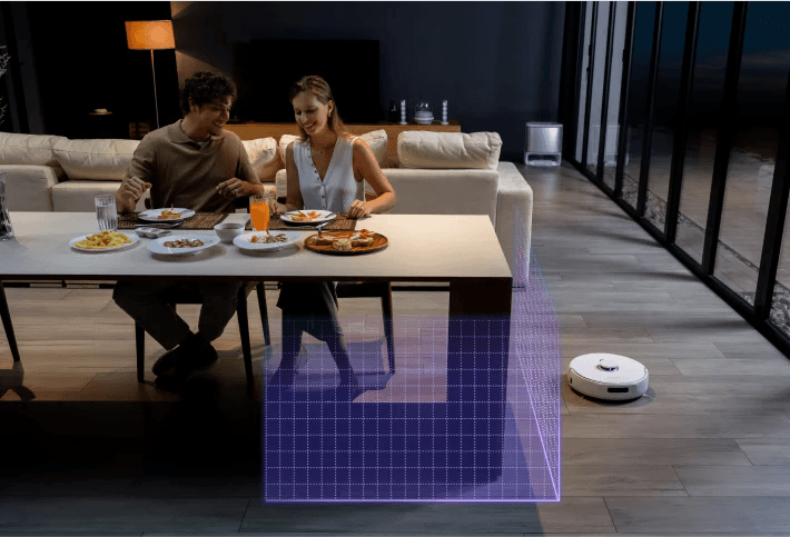 Identifies obstacles and cleans effectively in dimly lit spaces and dark rooms.