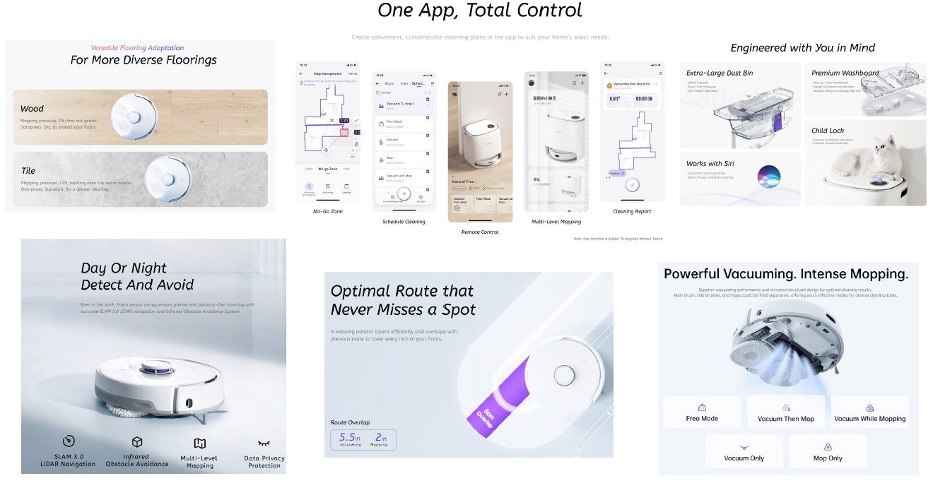 Dybere og mere sikker rengøring: De patenterede højhastighedsspindende moppepuder leverer en nedadgående kraft på 12N. Det originale trekantede design har problemfri rotation og efterlader ingen striber. Den nedadgående kraft kan vælges fleksibelt til forskellige gulvtyper. Vinyl, fliser, laminat, trægulve, marmor ... Narwal robotmoppe og -støvsuger beskadiger ikke dit gulv under dybderengøring.