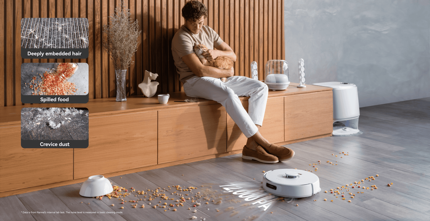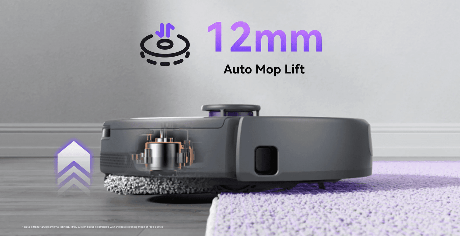 Ved at registrere snavs i realtid aktiverer dual-chip AI automatisk enten suge- eller moppefunktionen afhængigt af typen af snavs. Freo Z Ultra kan også justere moppetrykket baseret på forskellige gulvtyper (7N til trægulve, 12N til fliser) samt fugtniveauet (lav fugt til trægulve, moderat til fliser).